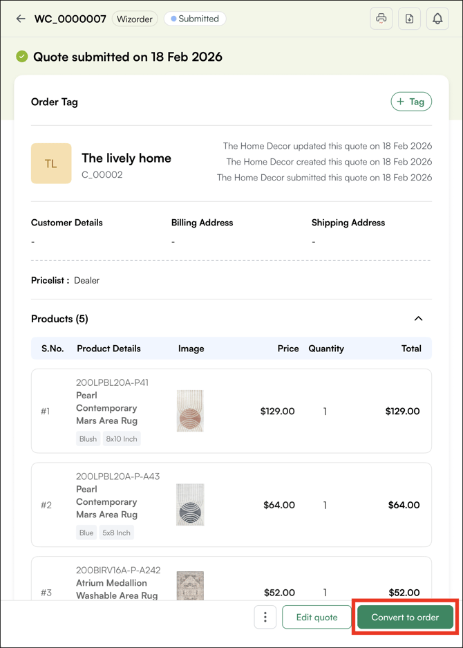1. Click the Convert to Order button.