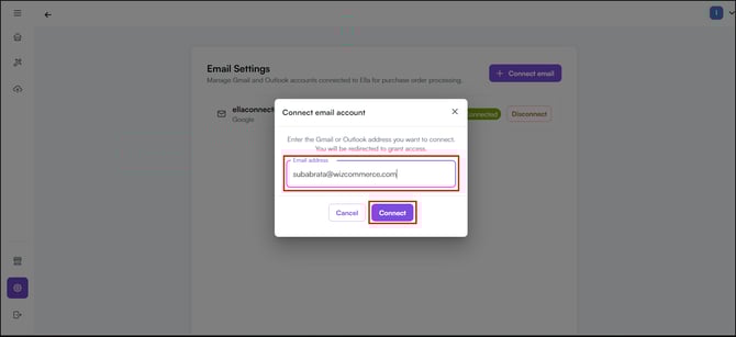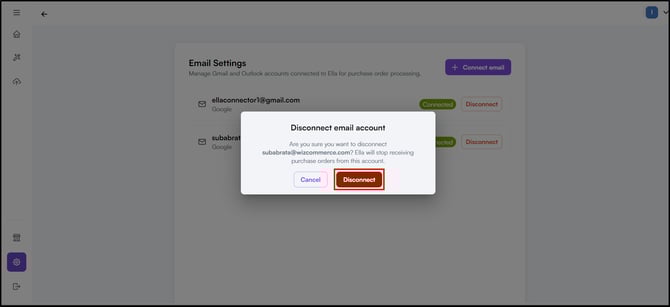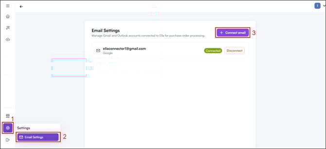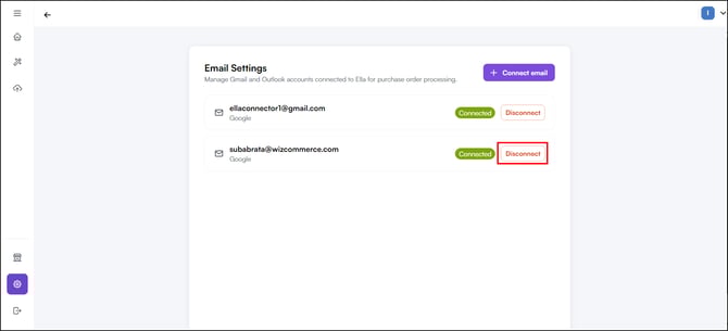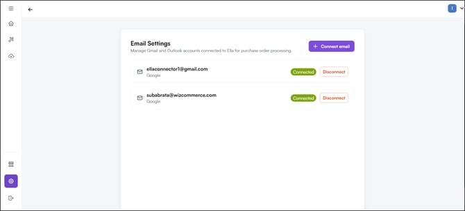 Note: You can connect multiple email addresses. Each connected inbox is monitored separately — purchase orders arriving in any of them are picked up and processed automatically.